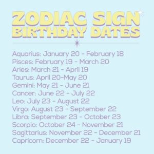 Aries Zodiac Signs Birthday Card. The Aries Zodiac sign birthday dates are March 21 – April 19. The ram represents the constellation aries, and the sign is known to be associated with energy, vitality, fun, and charisma. To see a full list of our Zodiac Birthday Calendar check out our Zodiac Signs Birthday Card 12 Pack.