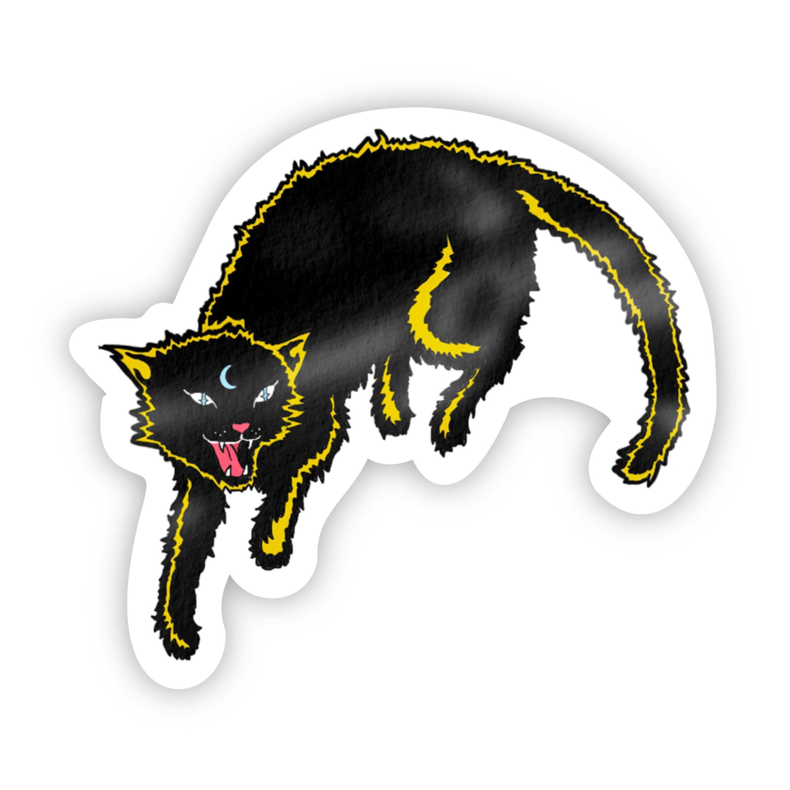Black Cat With Yellow Halloween Sticker. Great to decorate water bottles, laptops, phone cases, coolers, car windows, journals, notebooks, planners, bikes, skateboards, kayaks, and more. This sticker is great for any person who loves Halloween!