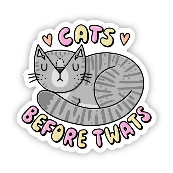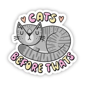 Funny british cat sticker. Created by Katie Ruby Illustrations. High quality vinyl sticker. Great to decorate laptops, water bottles, car windows, coolers, phone cases, journals, suitcases, and more. This sticker is part of our Katie Ruby Licensed Artist Spotlight Collection.