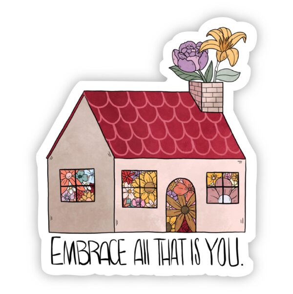 Embrace All That Is You Sticker. Great to decorate water bottles, laptops, phone cases, coolers, car windows, journals, notebooks, planners, bikes, skateboards, kayaks, and more. This sticker is a part of our positivity collection and makes a great gift!