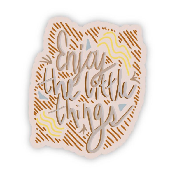 Enjoy The Little Things Lines Sticker. Great to decorate water bottles, laptops, phone cases, coolers, car windows, journals, notebooks, planners, bikes, skateboards, kayaks, and more. This sticker is the perfect reminder ot enjoy the small things in life!