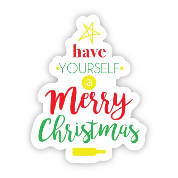 Have Yourself a Merry Christmas Tree Sticker. Great to decorate water bottles, laptops, phone cases, coolers, car windows, journals, notebooks, planners, bikes, skateboards, kayaks, and more.
