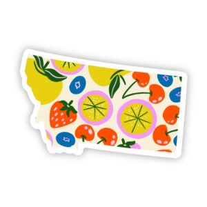 Cute new Montana Sticker with fruits including cherry, strawberry, citrus, and more. High quality and waterproof vinyl sticker. Great to decorate laptops, water bottles, car windows, coolers, kayaks, bikes, phone cases, journals, and more.