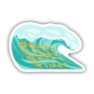 Ocean Vibes Salty Tides Sticker. Great to decorate water bottles, laptops, phone cases, coolers, car windows, journals, notebooks, planners, bikes, skateboards, kayaks, and more.